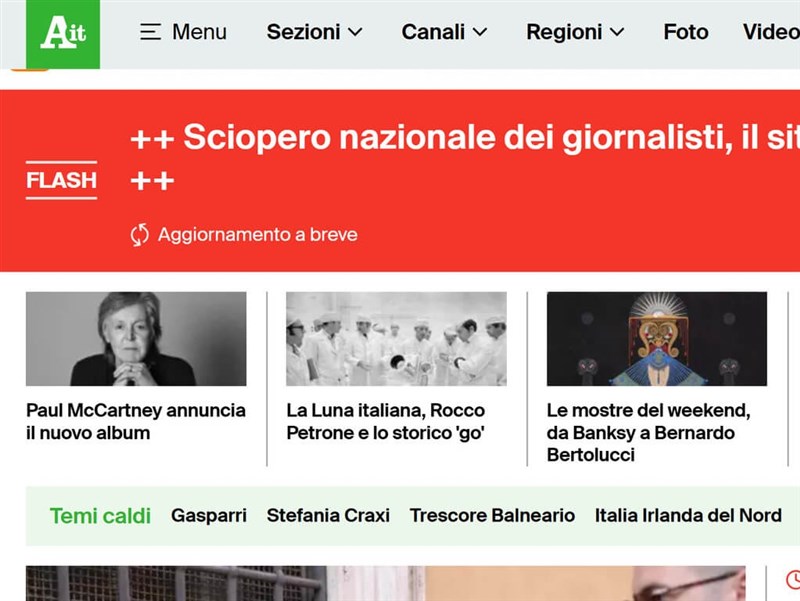 (中央社記者黃雅詩羅馬27日專電)義大利記者27日大罷工,全國主流媒體網站停止出報及停更網站,要求重訂團體勞動協議,改善過度低薪、剝削職場。義國新聞記者協會強調,「罷工非為捍衛特權,是捍衛基本原則:我們工作是有價值的」。