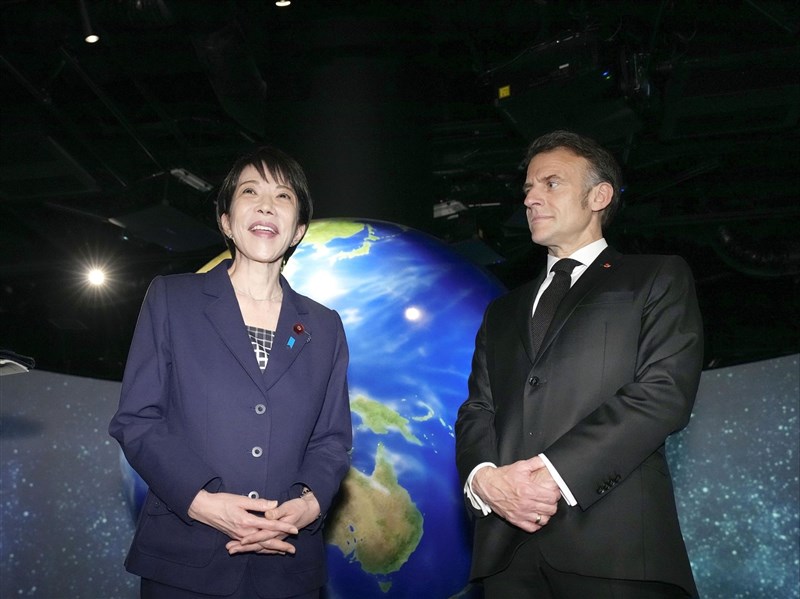 (中央社東京2日綜合外電報導)日本首相高市早苗昨晚在東京與法國總統馬克宏舉行會談,會後發布的聯合聲明記載,「兩名領袖強調台灣海峽和平穩定的重要性,敦促透過建設性的對話,和平地解決兩岸問題」。