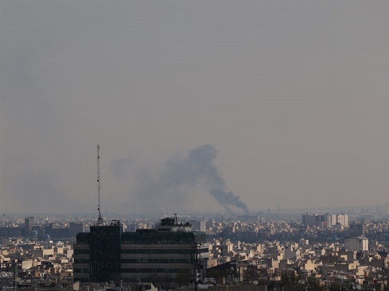 伊朗首都德黑蘭上空1日遭空襲後冒出濃煙。(Majid Asgaripour/WANA (West Asia News Agency) via 路透社)