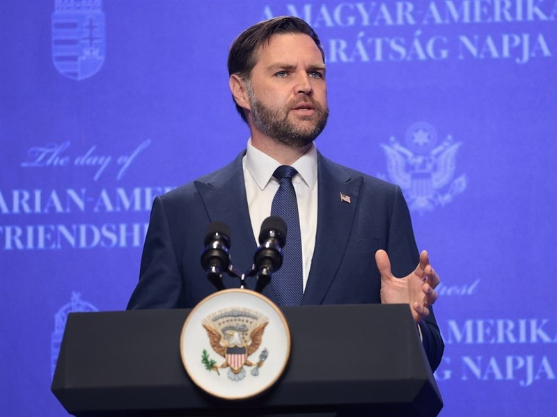 美國副總統范斯7日在匈牙利首都布達佩斯受訪。(路透社)