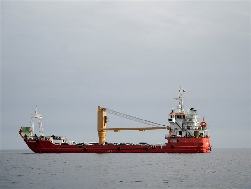 圖為12日停在荷莫茲海峽的一艘船。(路透社)