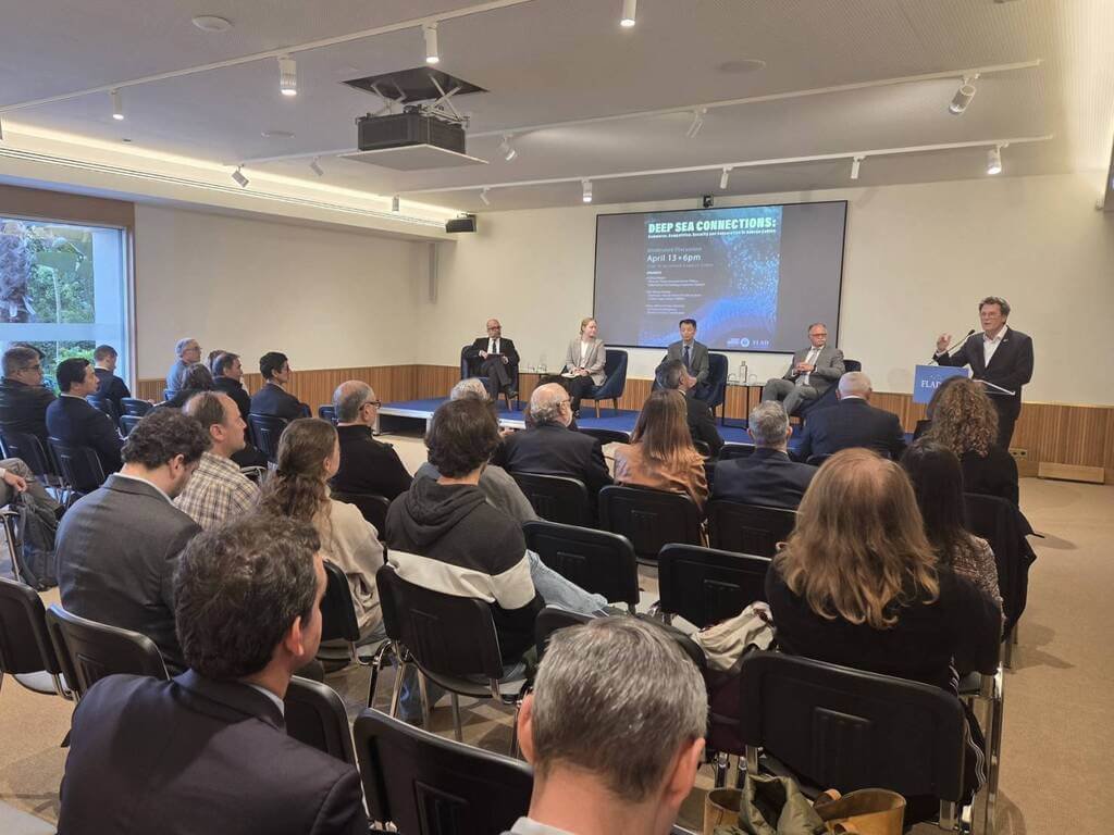 葡美發展基金會(FLAD)與美國駐葡萄牙大使館本月13日在里斯本舉辦「深海連結:海底電纜的貿易、競爭、安全及合作」座談會,邀請黃勝雄、資訊科技業協會(ITIC)電信政策主任納古斯(Olivia Negus)、大西洋中心(Atlantic Center)協調人暨海軍少將布拉岡薩(Nuno António de Noronha Bragança)與談。