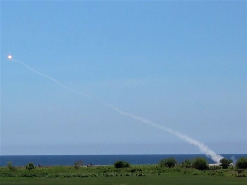 圖為菲律賓與美國2025年「肩並肩」聯合軍事演習,美軍陸戰隊的整合防空系統(MADIS)擊中空中目標。(中央社檔案照片)