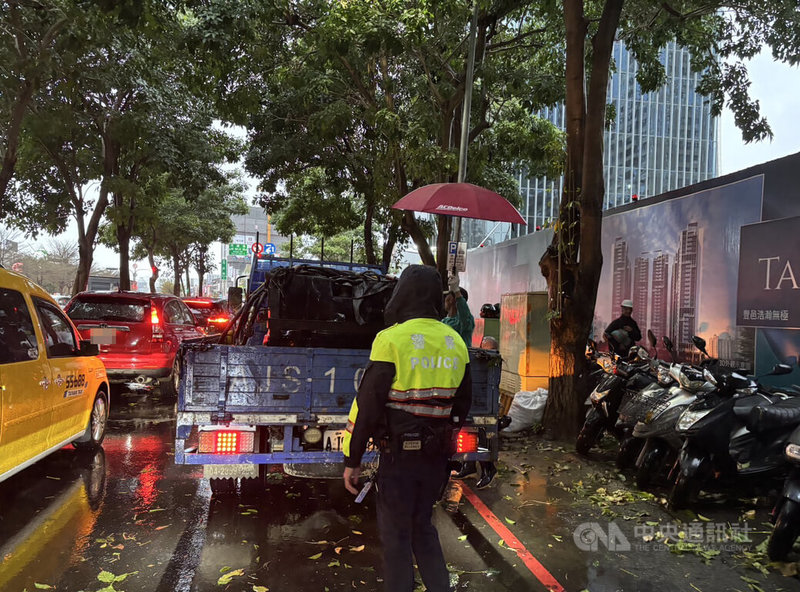 此外,台中市西屯區市政路與河南路口下午5時,因為狂風驟雨,造成路樹倒塌,壓到一輛貨車,還好倒塌路樹是掉落在後車斗,駕駛安全無恙。