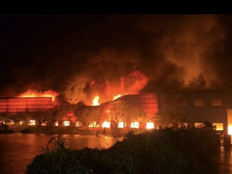 (中央社記者張榮祥台南10日電)束帶廠KSS凱士士企業股份有限公司設於台南市七股區第5廠今天凌晨3時許大火,廠房全面燃燒,火勢猛烈,台南市政府消防局緊急灌救3個多小時仍未控制,目前暫無人受傷受困。