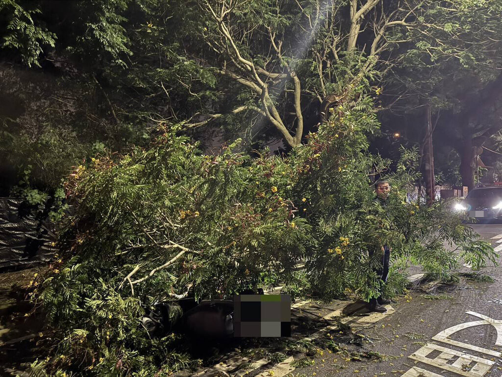 台中市第六警分局今天透過文字稿表示,19日晚間7時許,西屯路三段與遠東街口,發生路樹倒塌壓傷31歲王姓女子,女子右手輕微挫傷,經送醫治療後,已無大礙。