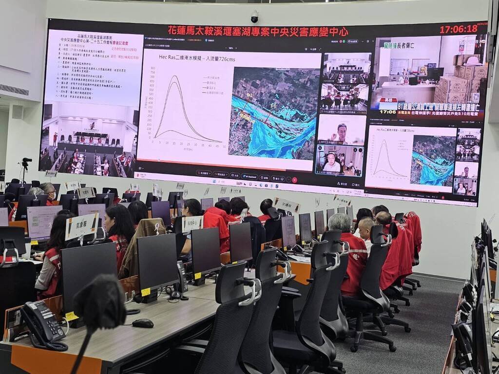 花蓮馬太鞍溪堰塞湖專案中央災害應變中心下午進行第25次工作會報暨情資研判會議,由副指揮官、農業部常務次長杜文珍主持。