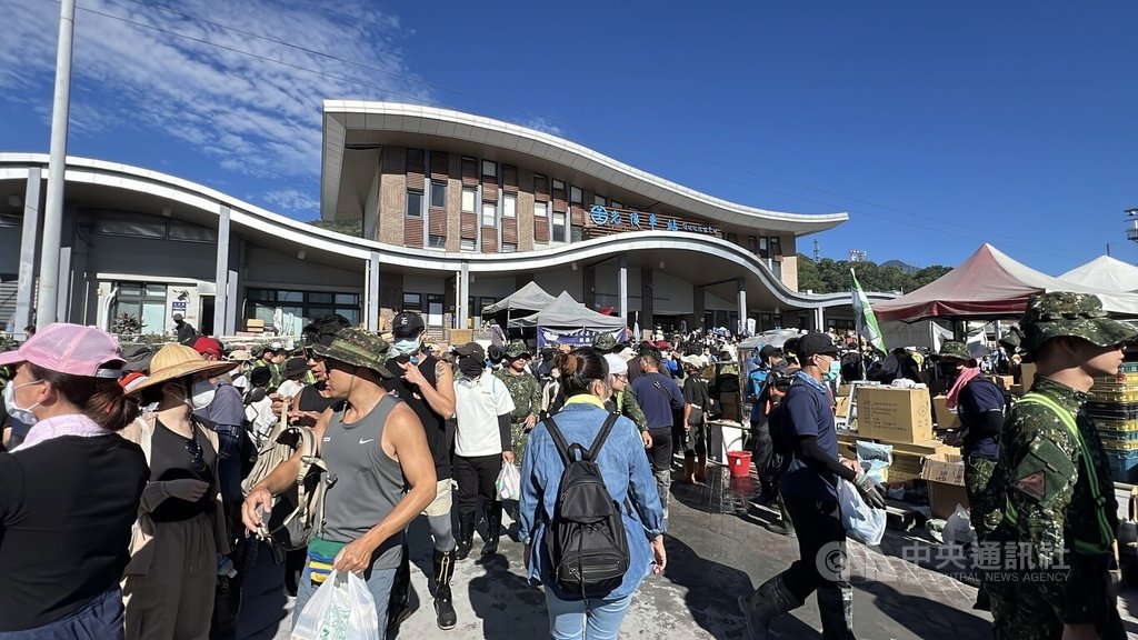 在火車站前協助志工的國軍第二作戰區區主任梁庭蔚告訴中央社記者,中秋連假首日,國軍派遣2413名官兵入災區,因連假第一天,志工的人數比平常多,估會有上萬人,有團體、有散客,還有向花蓮縣政府報名的志工,在這連假3天可以提升災區的服務人數。