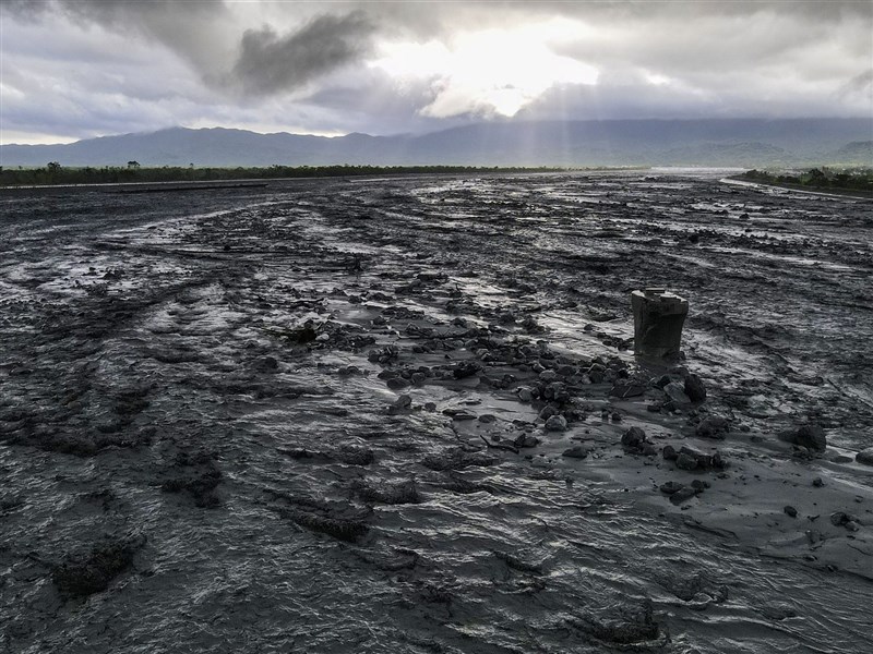花蓮馬太鞍溪堰塞湖溢流,馬太鞍溪橋不敵大水重擊遭沖斷,圖為9月24日馬太鞍溪橋橋墩佇立在泥水中。(中央社檔案照片)