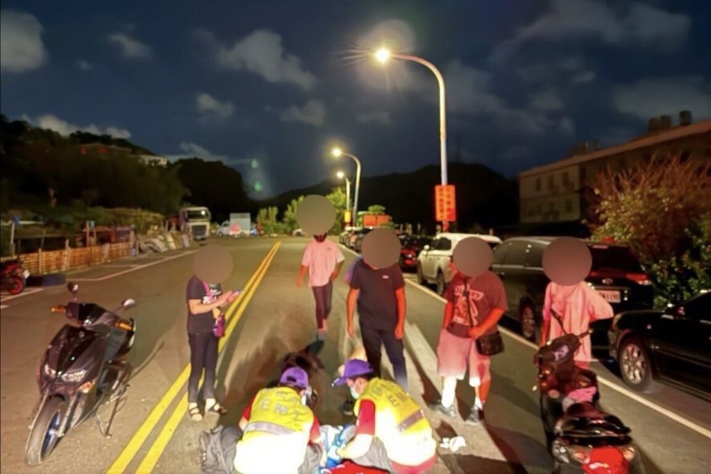 桃園市警局龜山分局表示, 9日深夜11時41分,18歲劉姓男騎士騎乘普通重型機車,於龜山區的光榮路直行,突然有一隻狗橫向衝出跨越馬路,劉男為了閃避緊急煞車導致人車倒地。