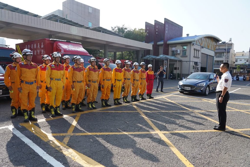 嘉義縣消防局接獲中央災害應變中心指令,今天再度派遣特種搜救隊前往花蓮執行3天搜救工作,上午10名特搜隊人員攜帶救生、特搜裝備及無人機,駕駛所需車輛,由局長蔡建安親自訓勉鼓舞士氣後,出發前往花蓮縣光復鄉地區。