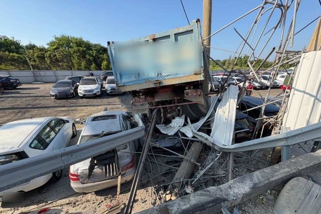 桃園聯結車衝出匝道槽化島 停車場多車受損
