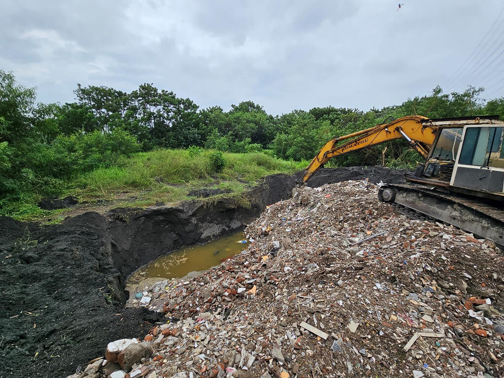 彰化地方檢察署今天發布新聞稿指出,警方於去年10月初颱風山陀兒過後,於二林中科園區用地發現遭開挖坑洞,以及被傾倒大量含碎磚、玻璃、塑膠片、廢木料等營建廢棄物,報請檢察官偵辦。