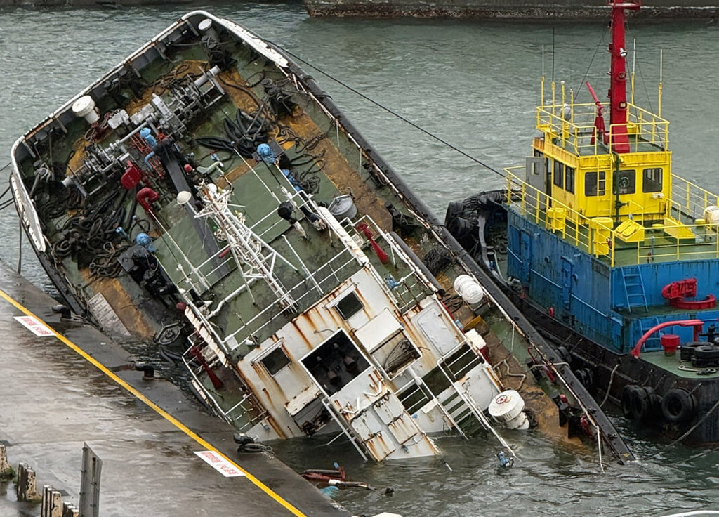 基隆港務分公司監控中心上午接獲通報,停航中的「宏略8號」疑似進水,導致船身嚴重傾斜,所幸無人員傷亡,經相關單位了解,船上只有潤滑油,沒有重油。