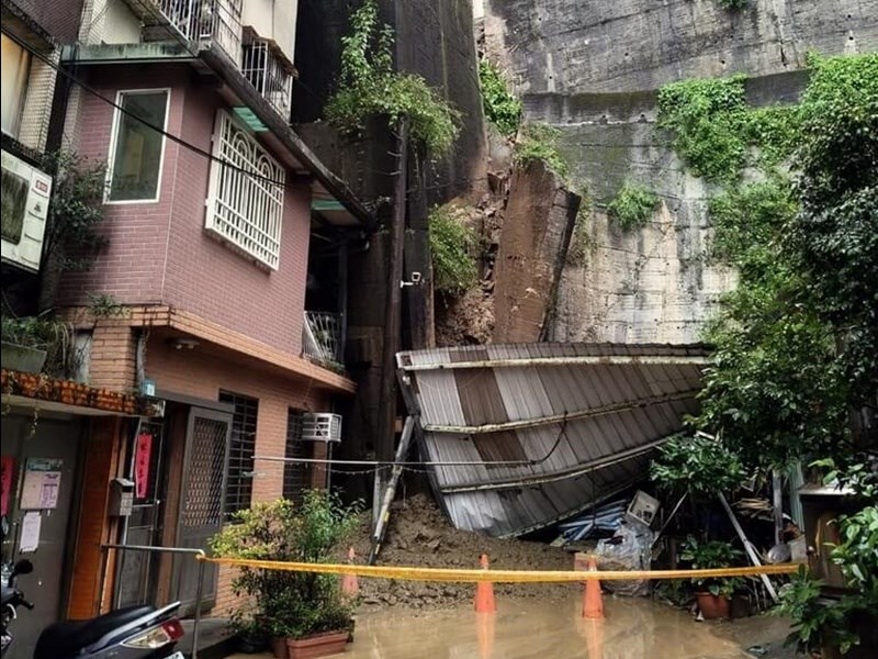 新店錦秀路擋土牆土石滑落1屋損毀 連夜撤離91人