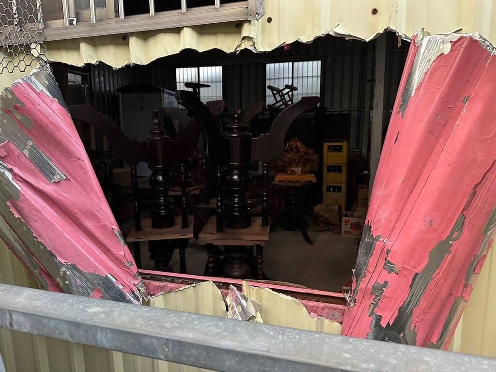 受害失主指出,竊賊不僅剪斷外圍柵欄鎖頭,甚至直接以器具剪破鐵皮拉開形成大洞進入行竊,行徑十分囂張。
