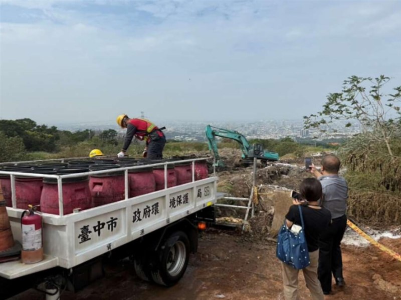 台中一處養豬場確診非洲豬瘟,台中地檢署30日派員前往垃圾掩埋場實地履勘,詳實觀察廚餘掩埋與焚化作業流程。(檢方提供)中央社記者蘇木春傳真 114年10月30日
