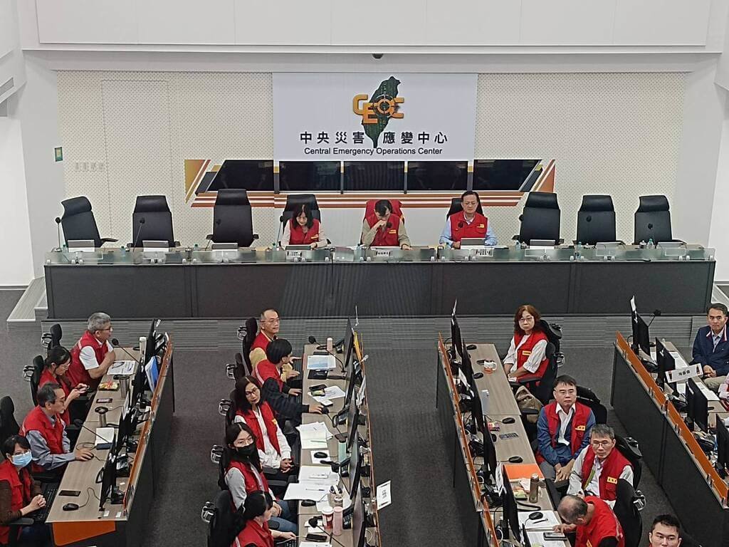 颱風鳳凰中央災害應變中心晚間進行第7次工作會報暨情資研判會議,由副指揮官、內政部政務次長董建宏主持。