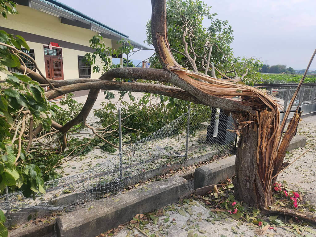相關人員告訴中央社記者,彰化縣溪州鄉大庄村有民宅旁樹木遭波及,另有民宅磚牆被撞倒,公所人員及軍方事後皆有前往關心。