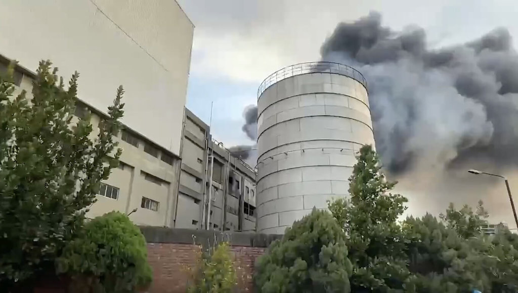 (中央社記者管瑞平苗栗縣5日電)苗栗縣頭份市自強路下午發生工廠火警,現場火勢猛烈濃煙漫天,消防局指出,廠房正進行冷卻水塔拆除作業,疑切割過程中不慎引燃濾網起火,經布線灌救控制火勢,無人受傷。