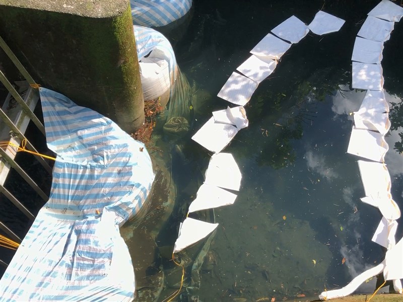 基隆河八堵抽水站附近河面在11月27日出現油污,造成基隆市與新北市汐止區共約18萬戶自來水有油味。