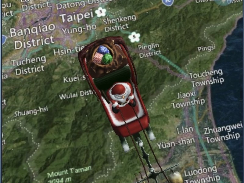 (中央社台北25日綜合外電報導)北美航太防衛司令部每年平安夜都會透過雷達系統,追蹤耶誕老人全球送禮之旅。官網指出,耶誕老人已於24日晚間22時41分飛越台灣上空,國防部也在社群平台X發布相關消息。