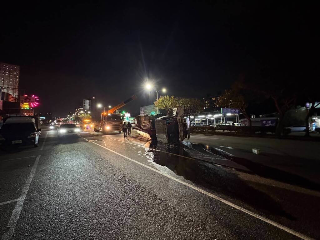 台中沙鹿向上路傳車禍 大貨車自撞分隔島翻覆