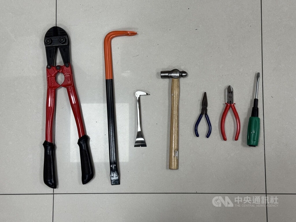 同時,現場查獲毒品安非他命2包,以及鐵撬、破壞剪等多項疑似犯案工具,並查扣贓物手機1具、遭竊車牌1面等相關證物。