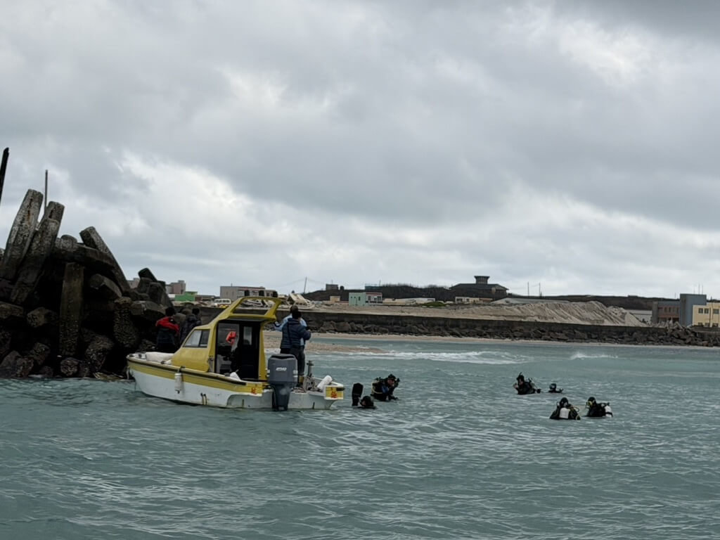 澎湖縣政府消防局等持續在事故海域、水下搜救與岸際搜尋吳姓船主,岸巡人員在青螺沙嘴發現遺體,並經家屬指認無誤。(編輯:李明宗)1150124