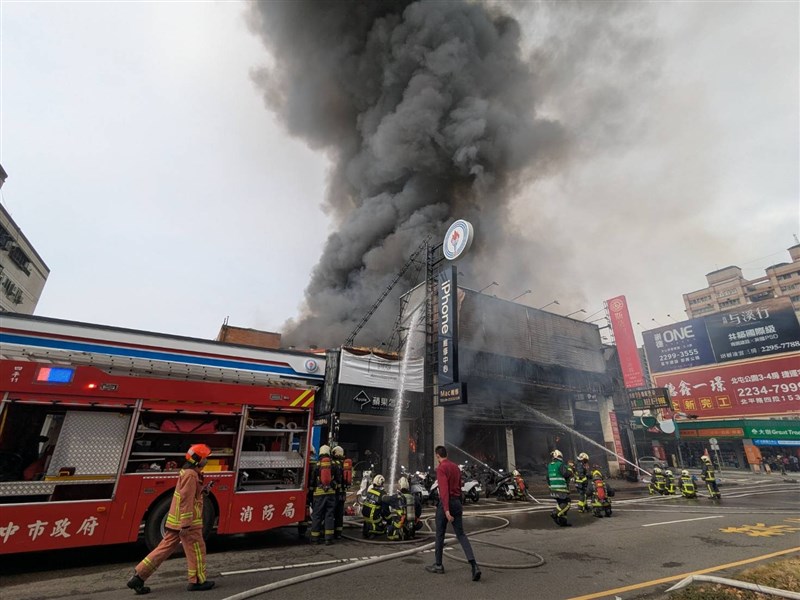 中市消防局第八救災救護大隊副大隊長林文榮接受媒體聯訪時表示,到場時家具店等多戶已全面燃燒,大部分屬鐵皮構造,且堆放大量可燃物,因輻射回饋效應造成火勢猛烈,出動39輛消防救護車、82名消防員到場搶救,初步勘查無人員受困受傷,火勢於近中午12時控制,正進行殘火處理。