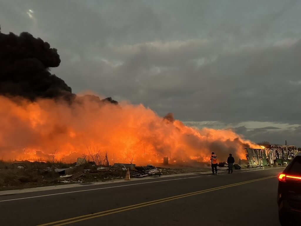 澎湖白沙鄉一處資源回收場大火 消防局持續灌救