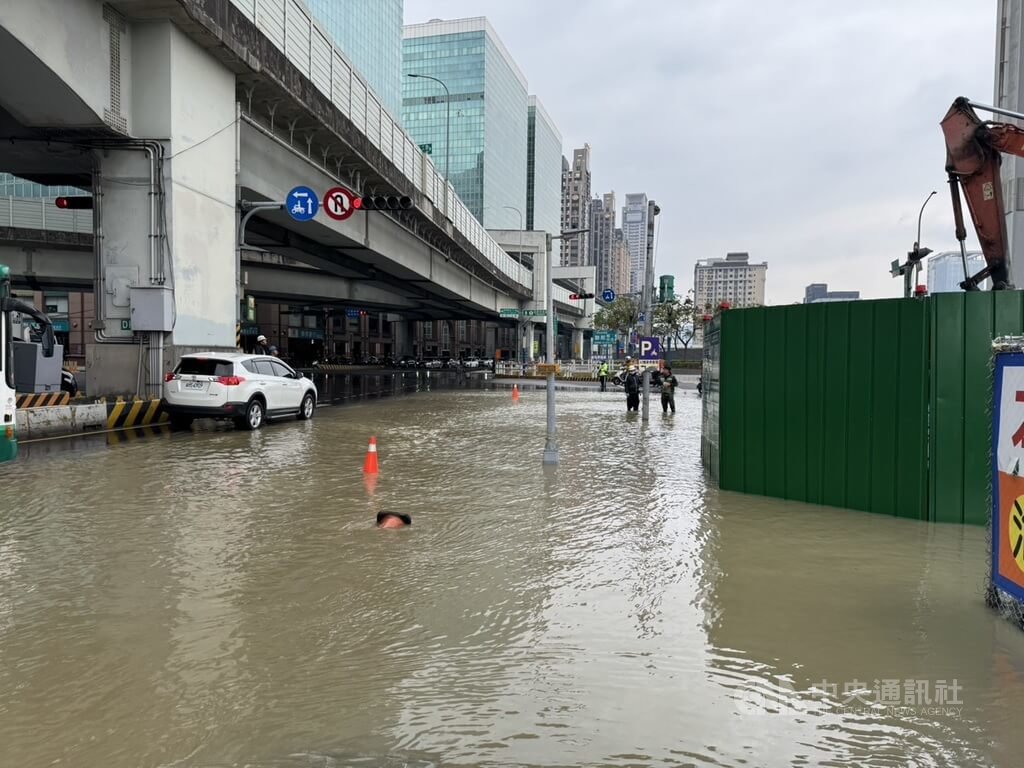 新莊分局以訊息說明,新北大道與五工路口上午11時許發生嚴重積水情形,已影響到周邊交通安全,警方迅速派員到現場進行交通管制,疏導車流。