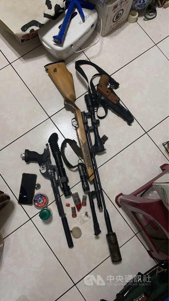 警方偵蒐完備後,上週持拘票及搜索票前往黃男住處執行搜索,當場查扣空氣槍3把、鉛彈2瓶、喇叭彈1盒、手機和平板電腦等相關證物。