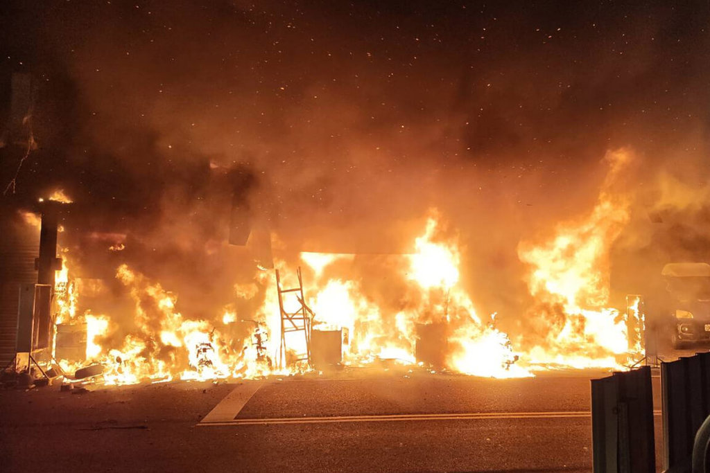 台南市政府消防局於晚間6時19分獲報,指稱在永康區二王路有建物發生火災,陸續調派25部各式車輛、54名人員前往灌救,抵達現場發現為1層樓鐵皮建物燃燒,延燒約8戶,疑似有人受困,立即出水搶救。