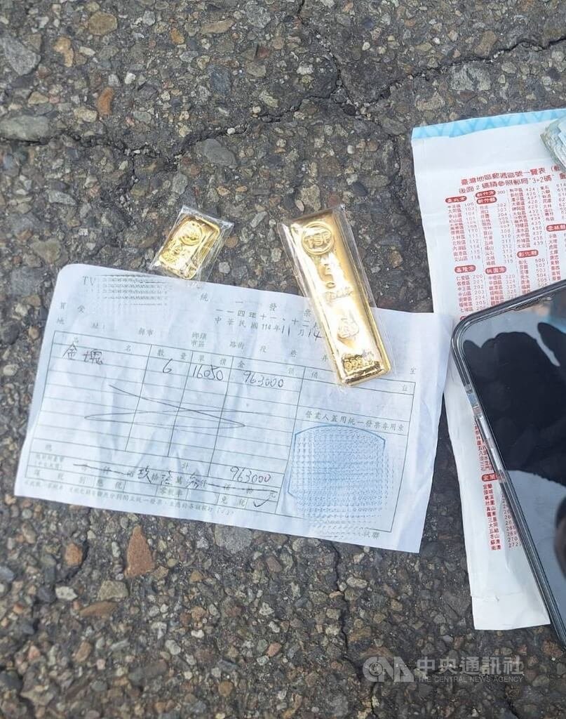 警方表示,被害人誤信詐團話術,並聽從指示向銀樓購買2塊黃金(總重6兩,折合新台幣96萬元),並交付予該集團「假專員」的張姓女車手(60歲),還好警方已掌握該集團於中苗地區流竄的作案車輛,利用張女交付黃金予收水成員何姓男子(20歲)之際,一舉查獲,並起出黃金及收據等證物。