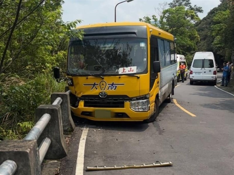 台北市警察局北投分局發布文字資訊表示,56歲陳姓男子駕駛大南客運沿泉源路北往南下山方向行駛時,因不明原因車輛打滑,導致客運的右前車頭與石墩護欄發生碰撞而肇事。