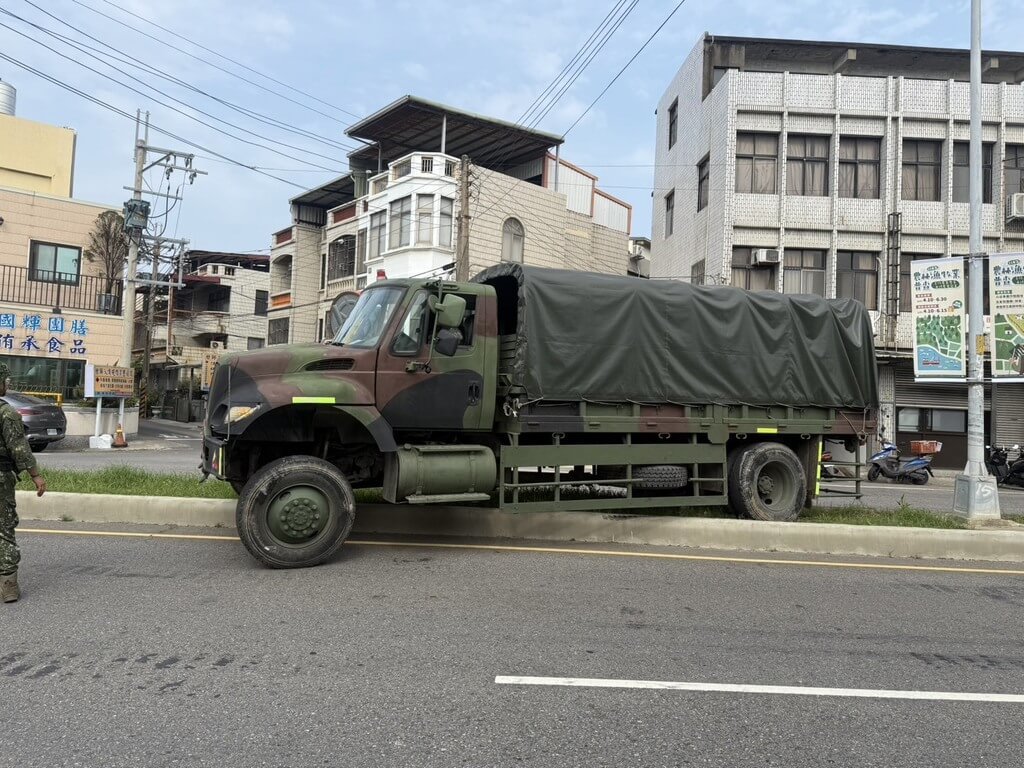 疑過彎不慎 軍卡衝上中央分隔島無人傷