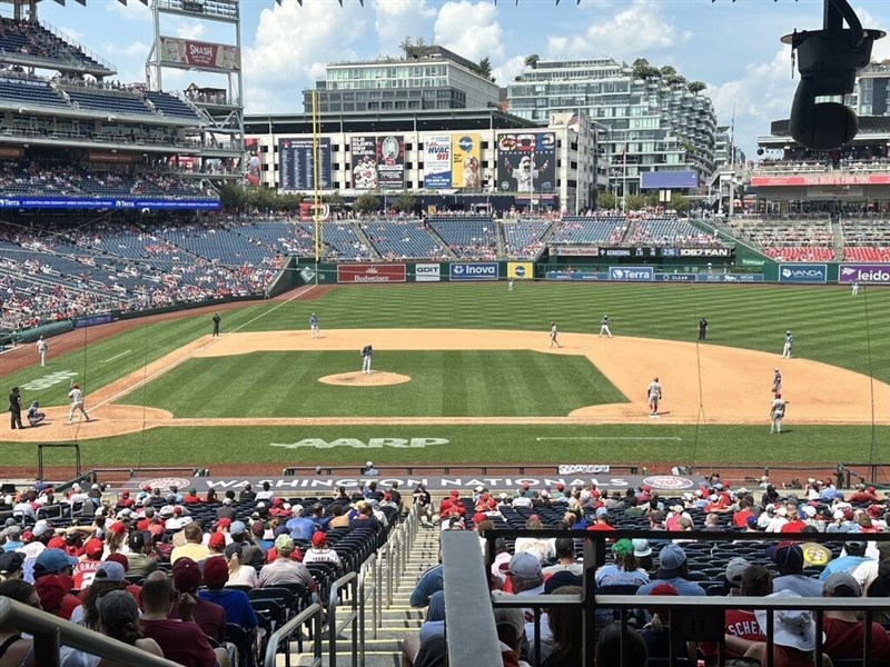 華府國民球場的氛圍帶有濃厚的社交性,許多主場球迷彼此熟識,不一定以完整觀看比賽為主要目的,而是在比賽途中陸續進出。本壘後方設有會員專屬酒吧,讓球迷能同時享受比賽與社交空間。