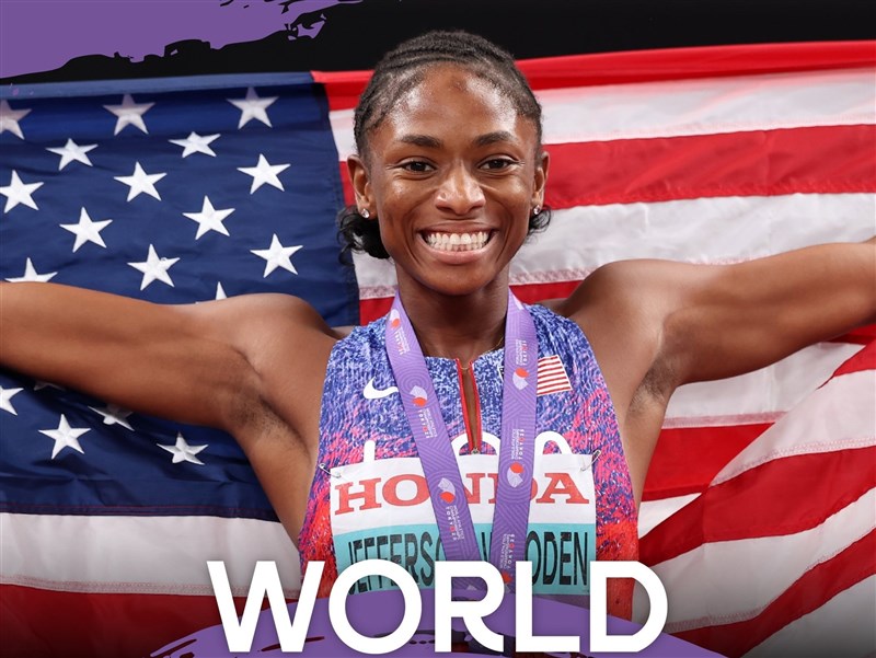 傑佛森-伍登(Melissa Jefferson-Wooden)今天取得金牌,這是美國女將菲利克斯(Alysson Felix)於2009年世錦賽締造女子200公尺三連霸以來,首次有美國選手奪金。