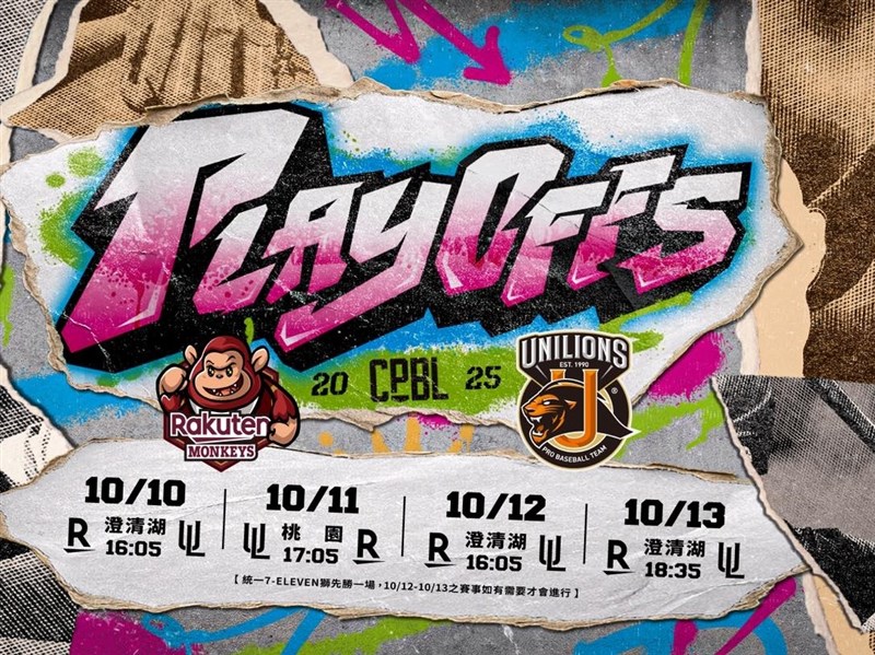 季後挑戰賽晉級球隊則擁有2場主場賽事,若統一獅晉級,21日及22日主場分別安排於台北大巨蛋及新莊棒球場;若由樂天桃猿晉級,21日及22日主場則分別安排在台北大巨蛋與樂天桃園棒球場舉行。(編輯:李錫璋)1141004