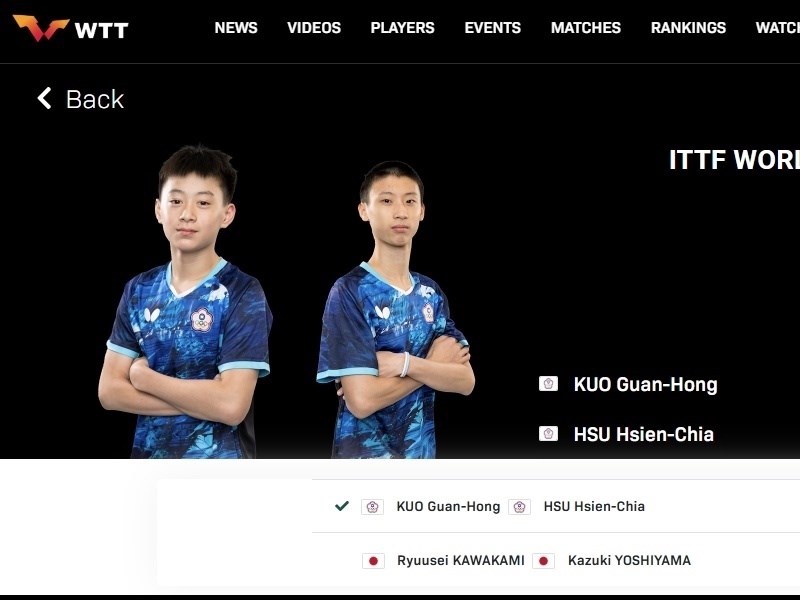 桌球世青賽郭冠宏徐絃家3比2擊敗日本 摘隊史U19男雙首金