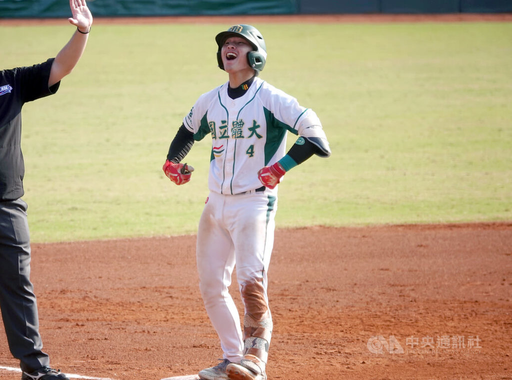 (中央社記者謝靜雯嘉義4日電)大專棒球聯賽(公開一級)複賽國立體大周柏恩長打、貢獻2分打點,助球隊以4比1擊敗台東大學;周柏恩大一就展現攻擊能力和特色,教練林衛宣看好磨練成長、具挑戰職棒的潛力。
