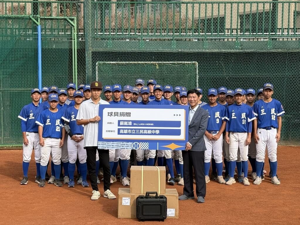 (中央社記者蘇志畬台北17日電)美國職棒聖地牙哥教士隊體系的台灣小將蘇嵐鴻,今日回到母校高雄市立三民高中,捐贈多套訓練球具回饋棒球隊,希望更齊全的訓練裝備能夠幫助學弟們更上層樓。