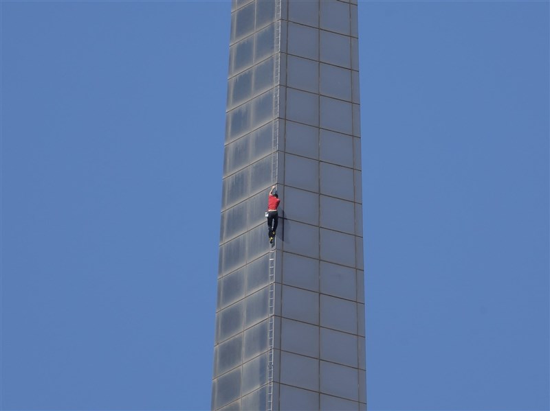 霍諾德(Alex Honnold)昨天在串流平台Netflix全球直播下徒手攻頂101層樓、508公尺高的台北101,全程耗時約1個半小時。