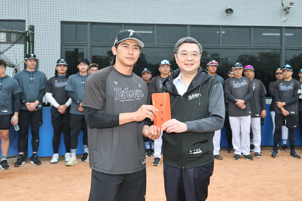 (中央社記者蘇志畬台北30日電)行政院長卓榮泰今天前往高雄國家運動訓練中心,為正在備戰世界棒球經典賽(WBC)的台灣隊加油打氣,並致贈新台幣20萬元加菜金,勉勵球員爭取更高國家榮譽。