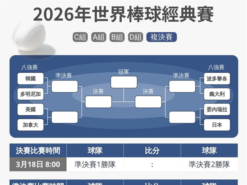 - 經典賽8強對戰組合出爐 多明尼加戰韓國 日本對委內瑞拉2026/03/12 11:55