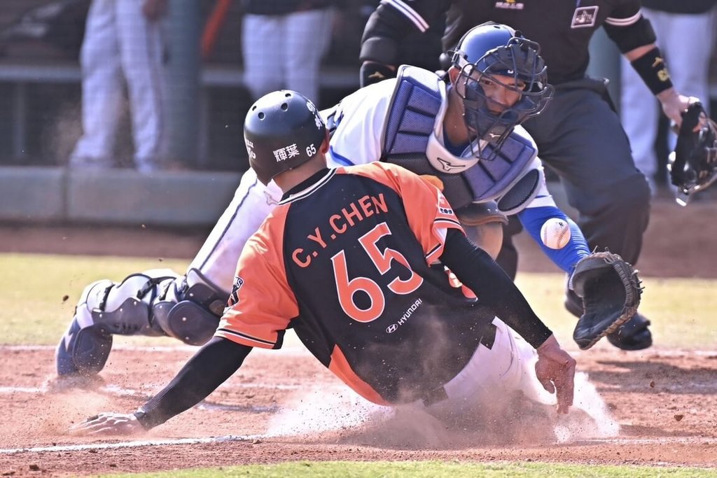 獅隊打線受制,前7局沒有拿下分數,8局上潘傑楷、陳重羽接連安打,潘磊適時二壘打,幫助球隊追回2分,但攻勢沒有延續。