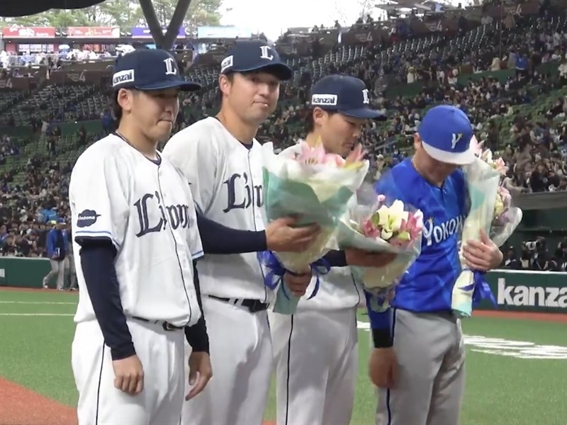 今天西武隊與橫濱隊交手,賽前兩隊總教練分別送上花束,表彰陣中參與今年世界棒球經典賽(WBC)的球員,西武隊由內野手源田壯亮、投手隅田知一郎及代表台灣隊的林安可出席,橫濱隊則由強打牧秀悟接受獻花。
