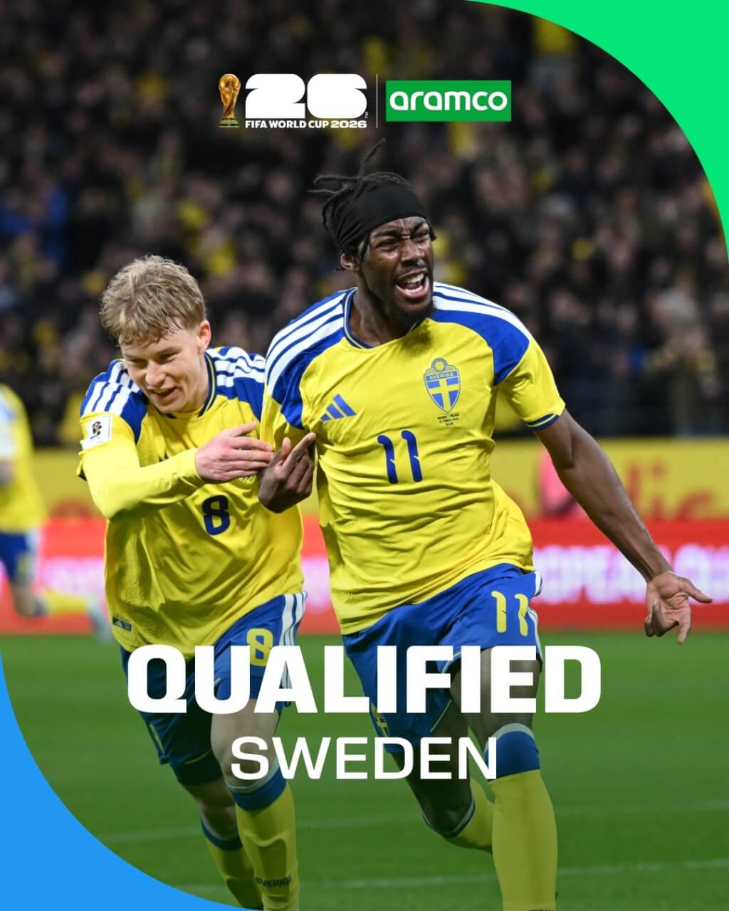 法新社報導,兩隊原本戰成2比2平手,比賽剩下兩分鐘時,效力於英格蘭足球超級聯賽勁旅兵工廠(Arsenal)的約克雷斯,在門前混戰中找到機會起腳破網,助瑞典取得世界盃會內賽資格,將與荷蘭、日本與突尼西亞一同分在F組。
