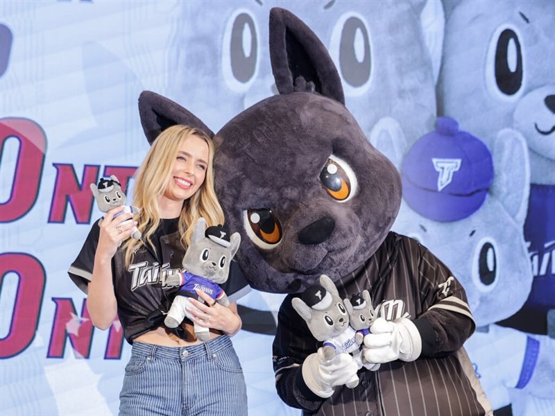 (中央社記者謝靜雯台北7日電)因為台美混血好手「費仔」費柴德太太韓納的喜愛,讓中職推出的吉祥物「歐告」爆紅,韓納今天與「歐告」正式見面馬上告白:「I Love歐告」,也品嚐台灣美食,最愛甜不辣。